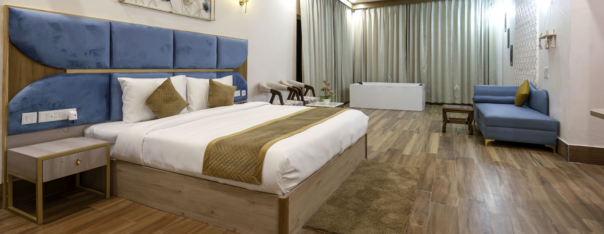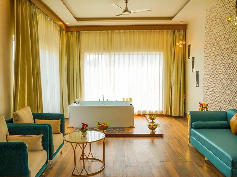 The Jacuzzi Room is designed for a luxurious and relaxing stay experience. Featuring a private in-room jacuzzi, this category offers the perfect space to unwind and rejuvenate after a long day. With elegant interiors and premium comfort, it promises a truly indulgent stay.